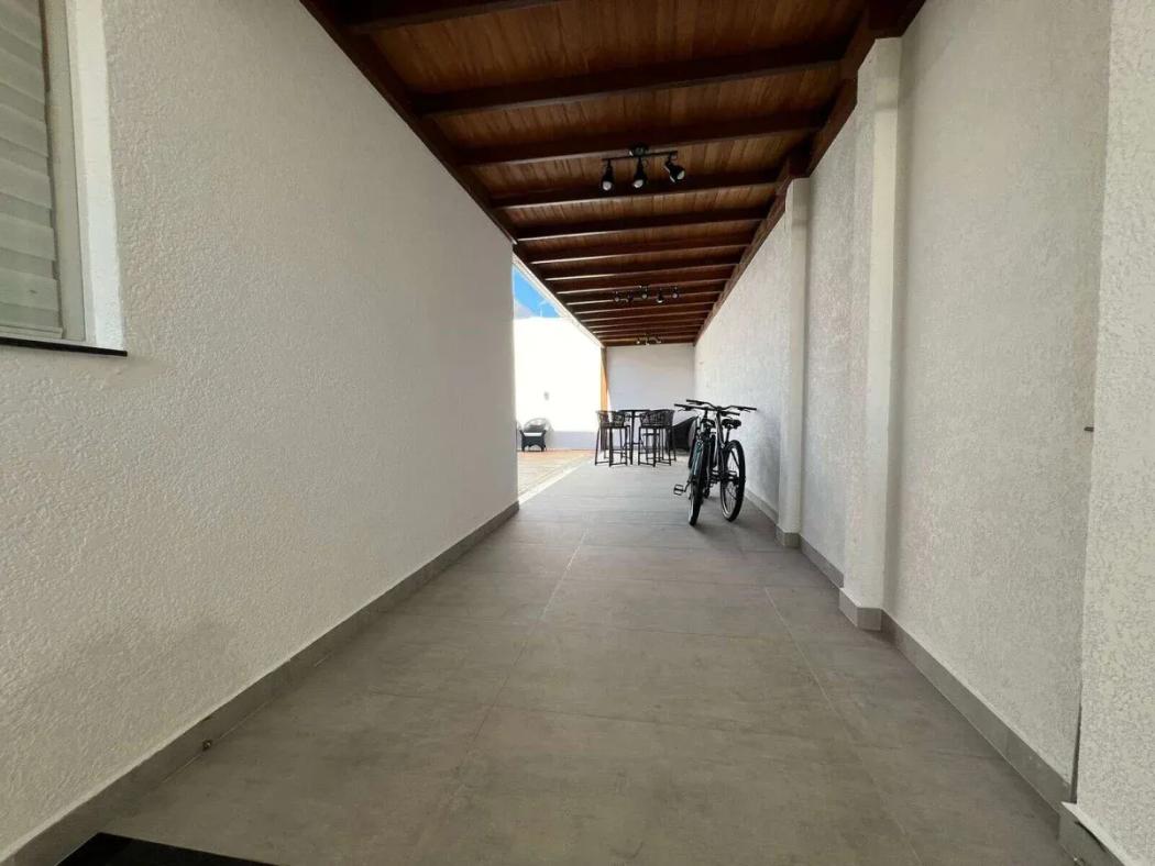 Nos fundos, o espaço gourmet integrado à piscina cria o cenário ideal para receber amigos e familiares, proporcionando momentos de lazer e descontração.