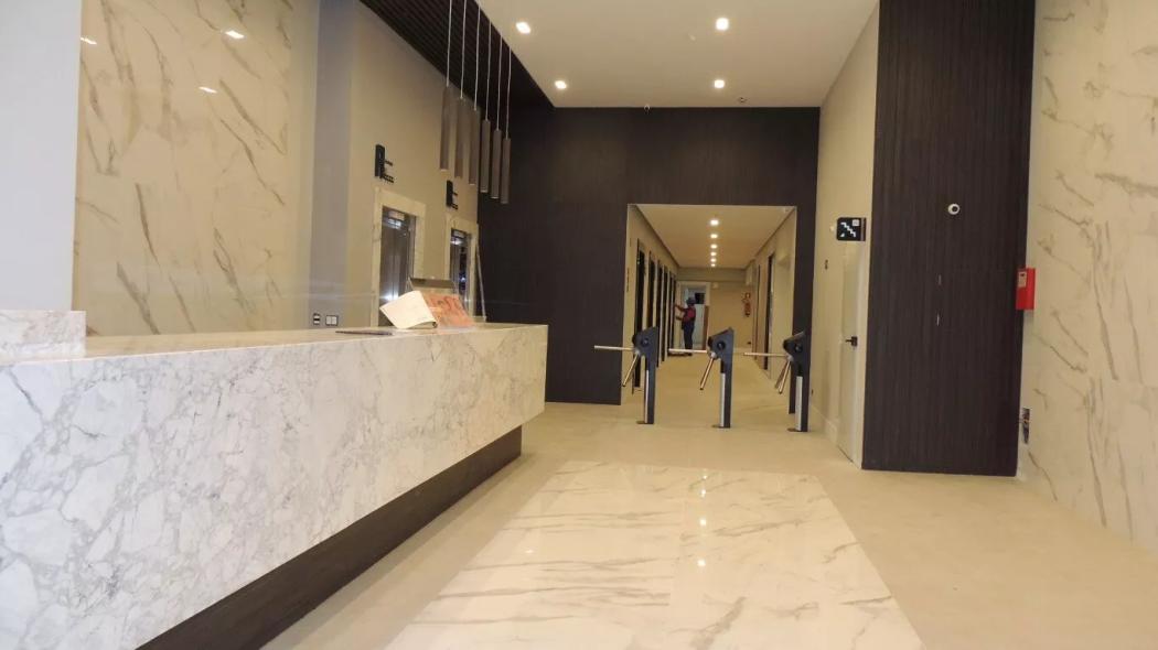 *LOBBY DE ENTRADA E RECEPÇÃO: O lobby moderno e imponente com pé direito duplo.